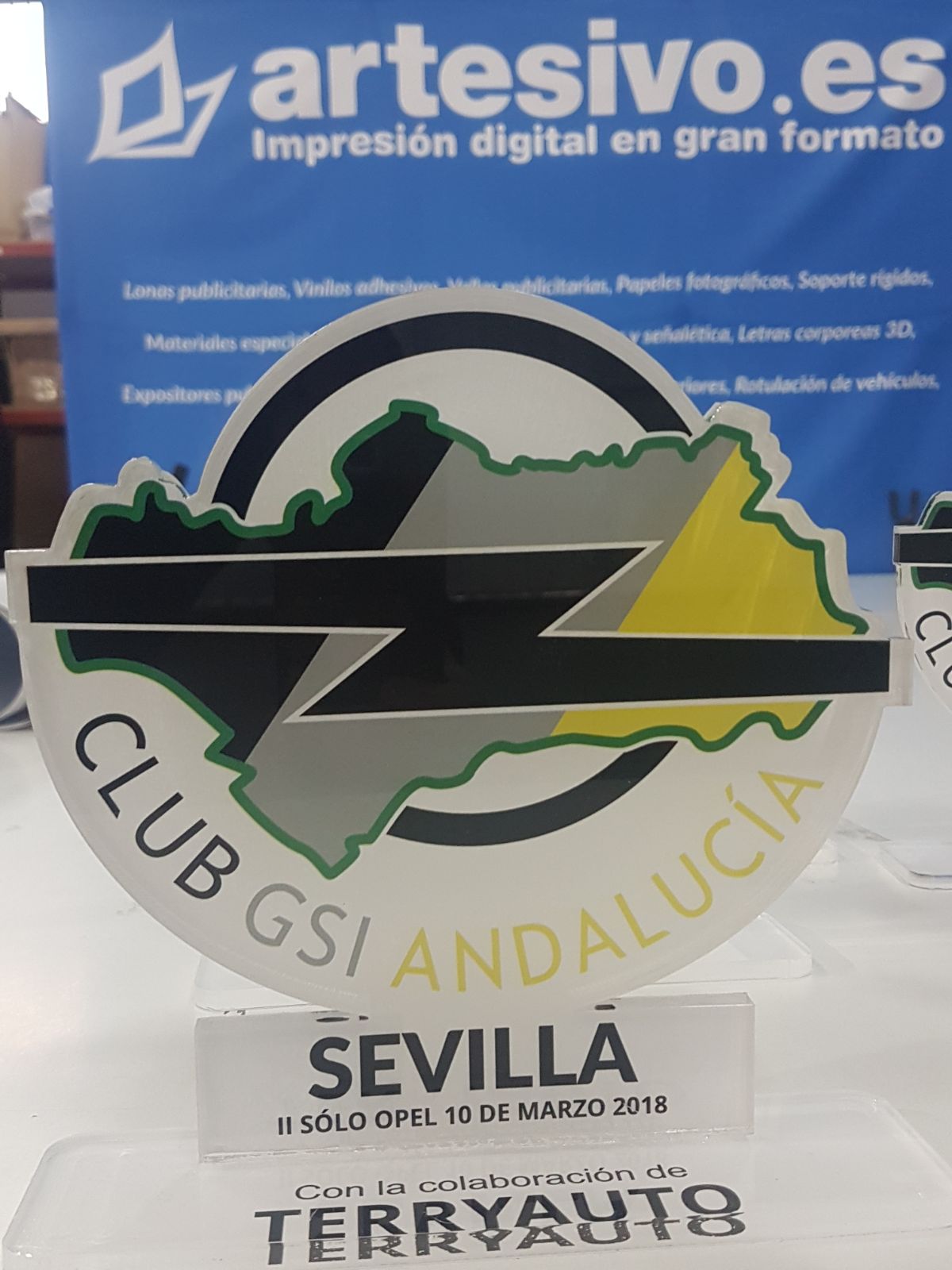 Trofeos de metacrilato impresos y troquelado para la Asociación OPEL GSI ANDALUCÍA, para mas información acerca de estos productos puede visitarnos en haciendo clic aquí: